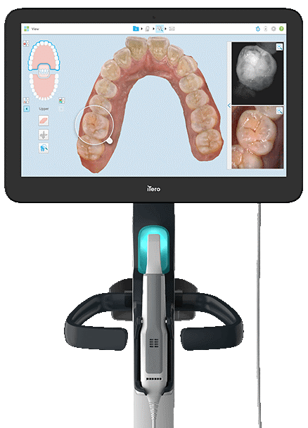 The iTero digital scanner allows dentists & their patients to quickly & clearly view images right in the treatment room. This imaging allows the dentist to clearly explain needed treatment while showing you exactly what is happening with your smile. The high-definition rendering can show teeth in fine detail so even small chips or cavities can be clearly viewed. The iTero does not produce any x-ray radiation, and utilizes Near Infrared technology to aid in the detection of cavities.
